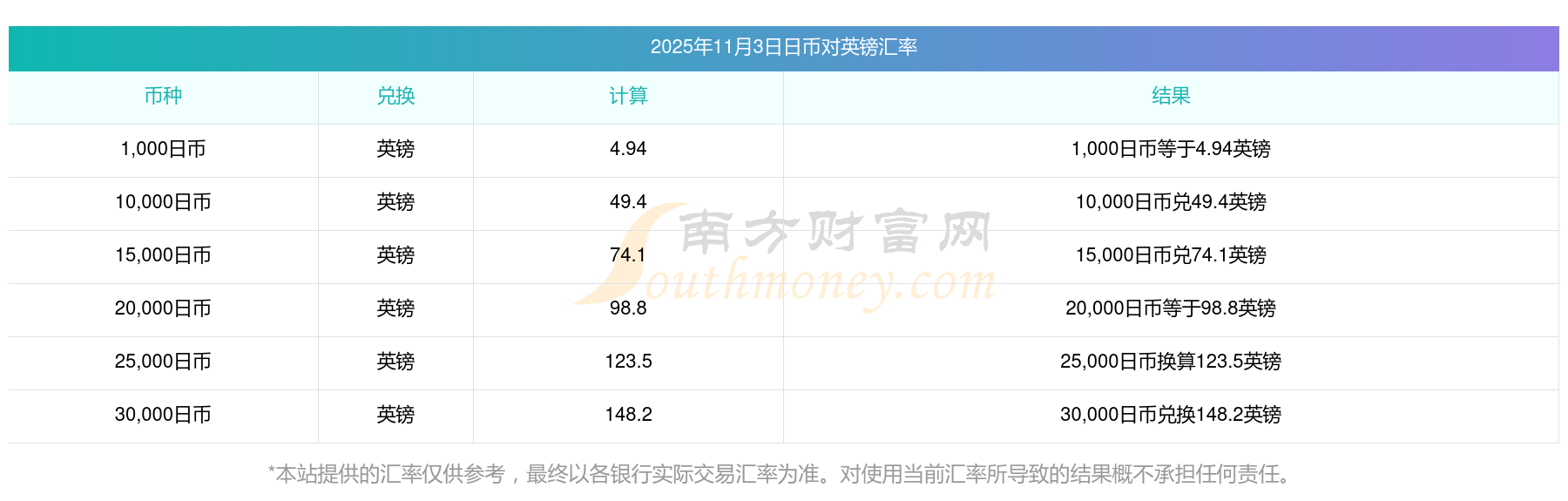 今日汇率调整:日币兑英镑外汇行情一览(11-03)