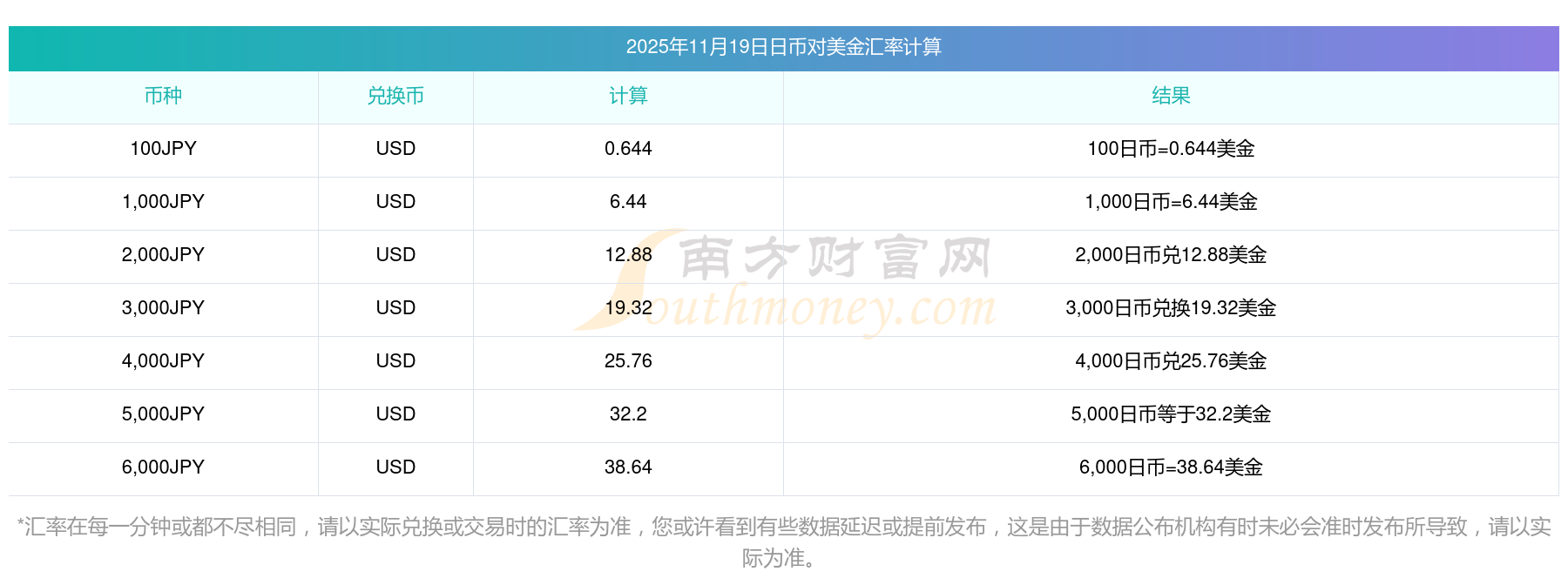 现在4730日元与美元的互换汇率是多少?2025年11月19日