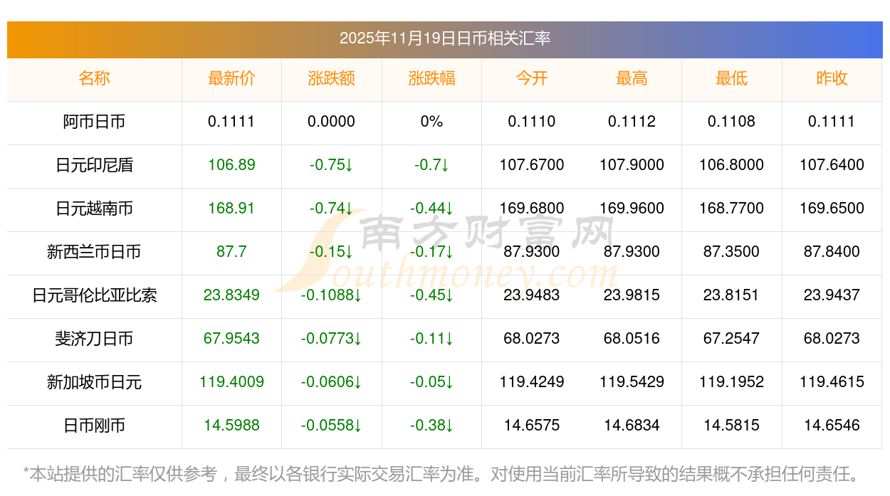 今天汇率价格查询 | 1.5万日币兑换刚币行情查询 2025/11/19