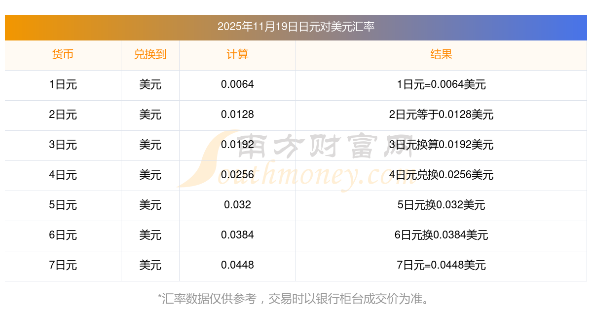本站提供的汇率仅供参考,最终以各银行实际交易汇率为准。对使用当前汇率所导致的结果概不承担任何责任。