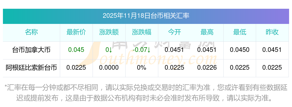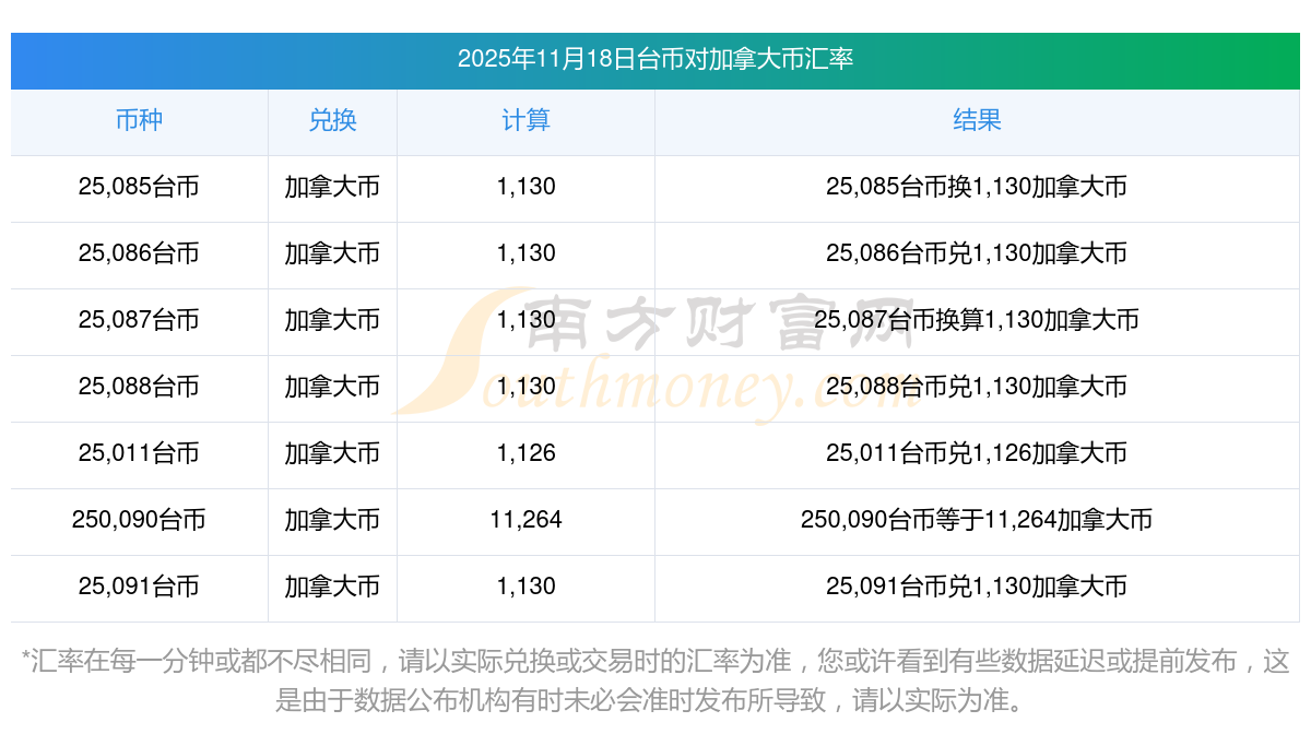 今天55台币兑换加拿大币的最新汇率 附查询方法2025/11/18