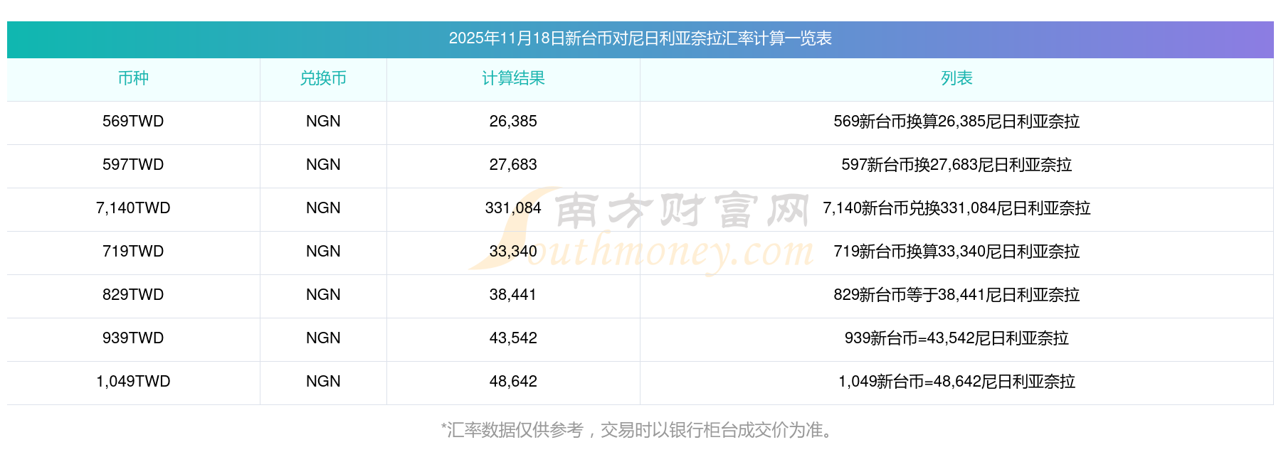 今天新台币对尼日利亚奈拉汇率查询2025-11-18