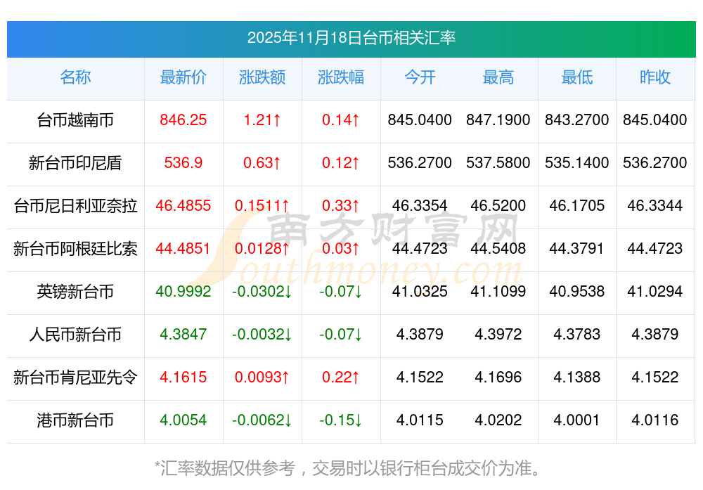 2025年11月18日台币相关汇率查询
