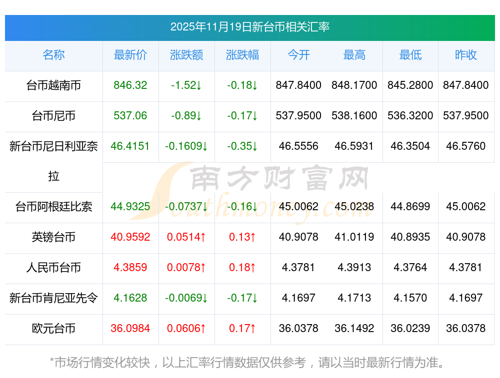 根据2025年11月19日汇率计算,TWD兑换COP汇率最新价119.335000: