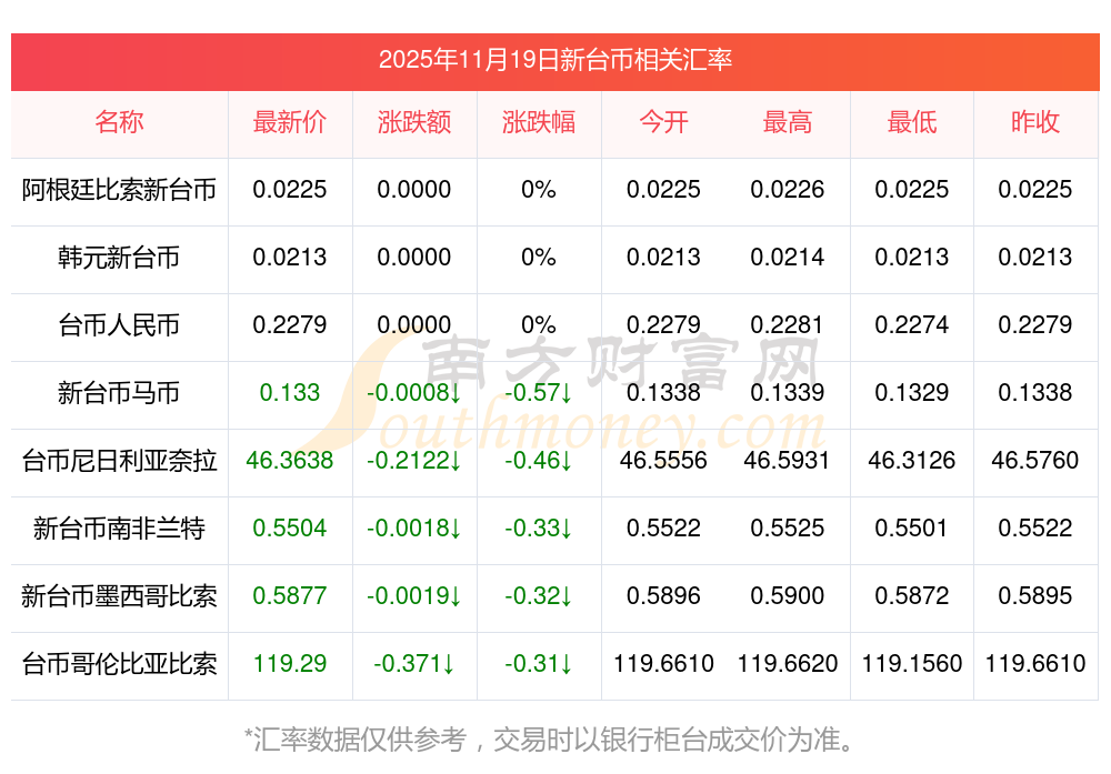 2025年11月19日新台币相关汇率查询