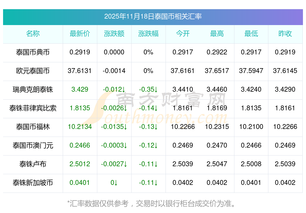 最新泰国币对兰特汇率是多少?_今日汇率查询2025-11-18
