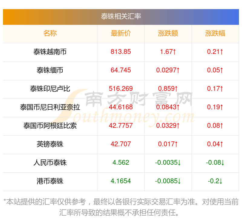 根据2025年11月18日汇率,泰铢兑换缅币汇率最新价64.745000,今开价64.7153,昨收价64.7153,最高价64.8151,最低价64.5856。