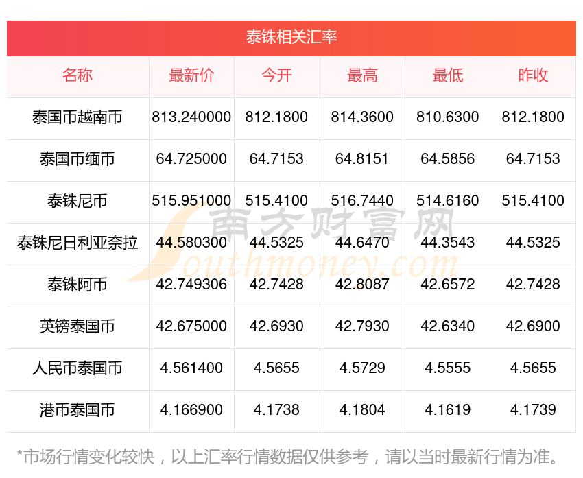 根据2025年11月18日汇率,泰铢兑换新西兰元汇率最新价0.054429,今开价0.0544,昨收价0.0545,最高价0.0546,最低价0.0544。