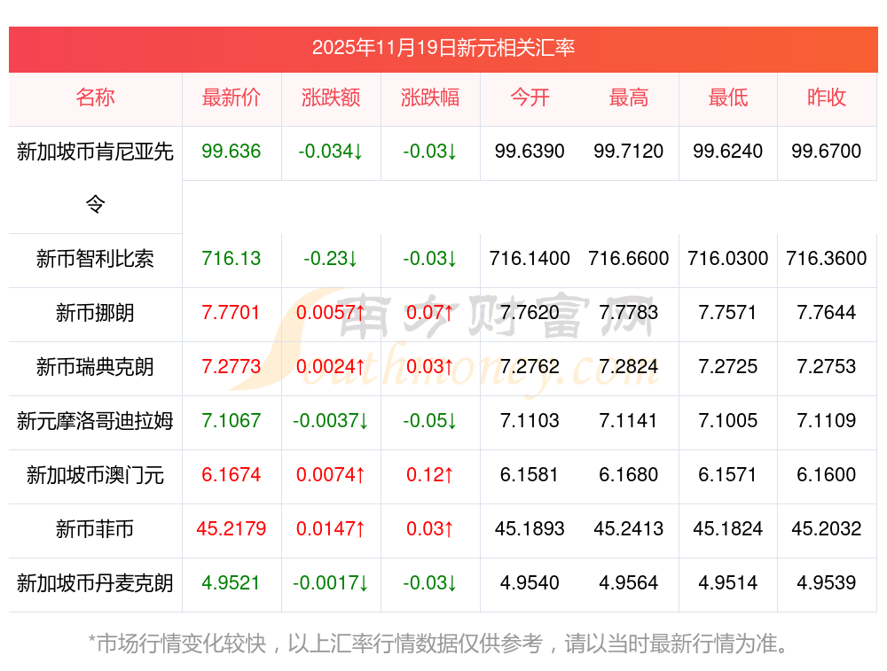 2025年11月19日新元相关汇率查询