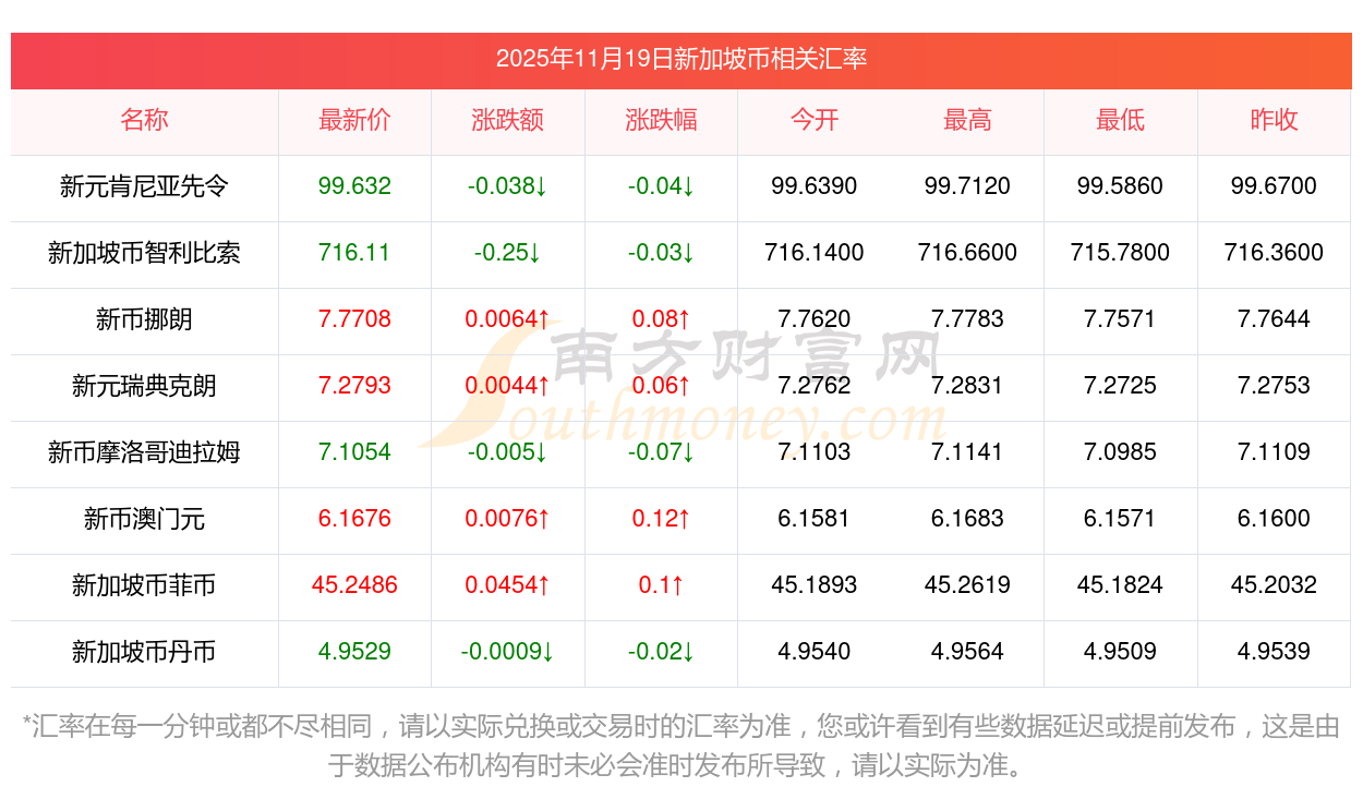 2025年11月19日新加坡币相关汇率查询