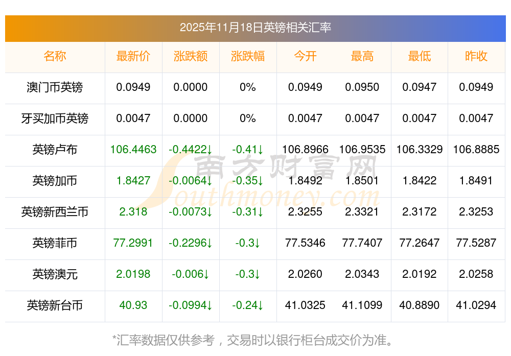 根据2025年11月18日汇率计算,GBP兑换MYR汇率最新价5.477800:今日开价5.4600,昨日收价5.4596,最高价5.4989,最低价5.4541。