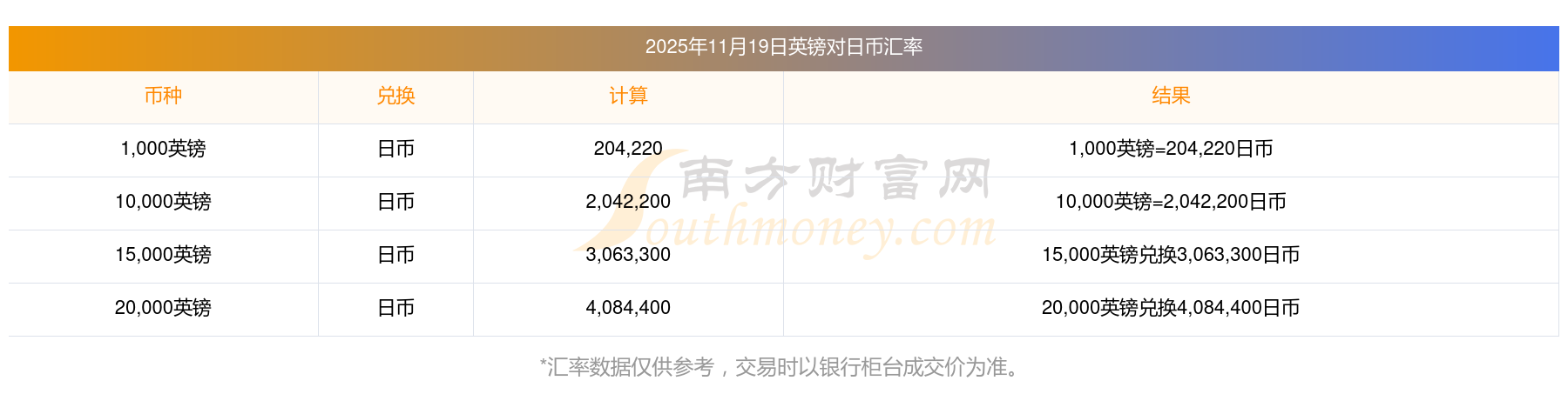 英镑对日币汇率价咋样 128英镑对日币汇率是多少?2025-11-19