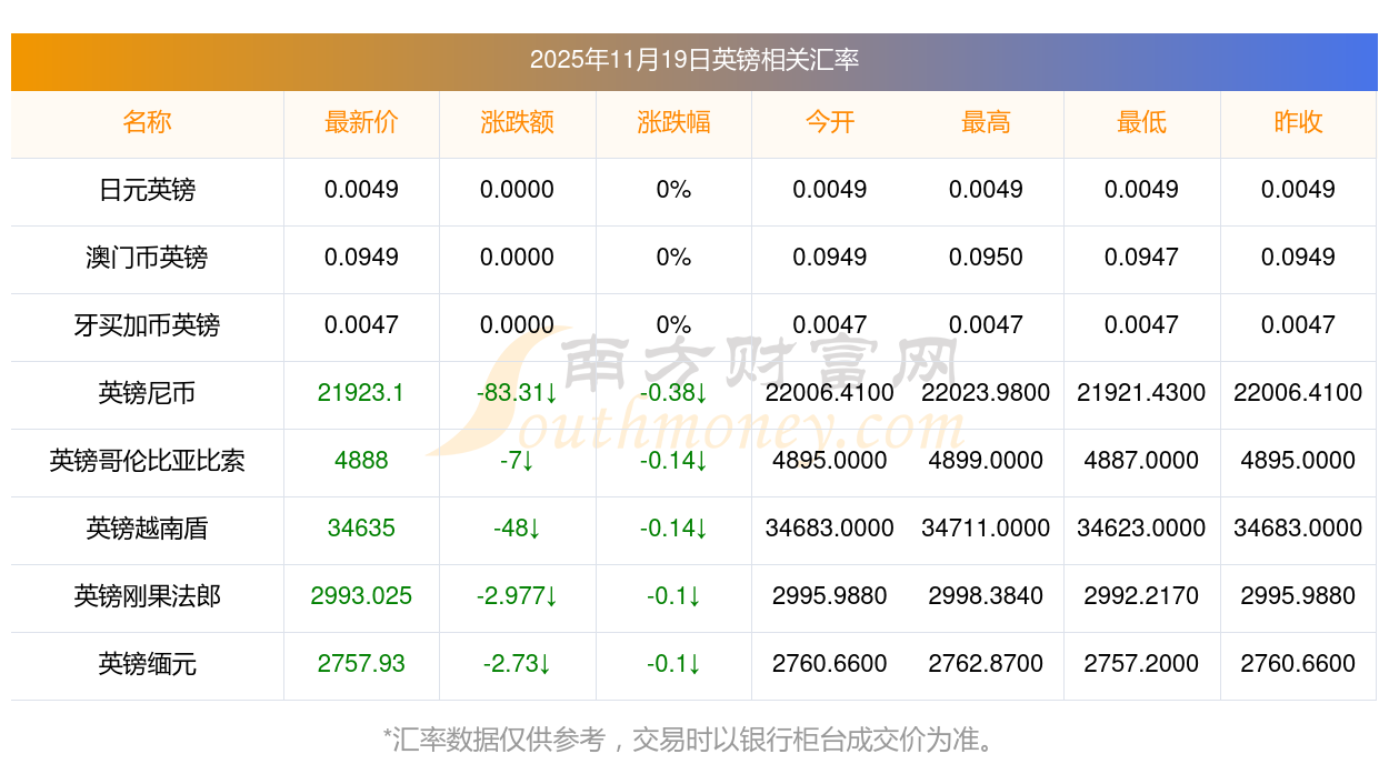 2025年11月19日英镑相关汇率查询