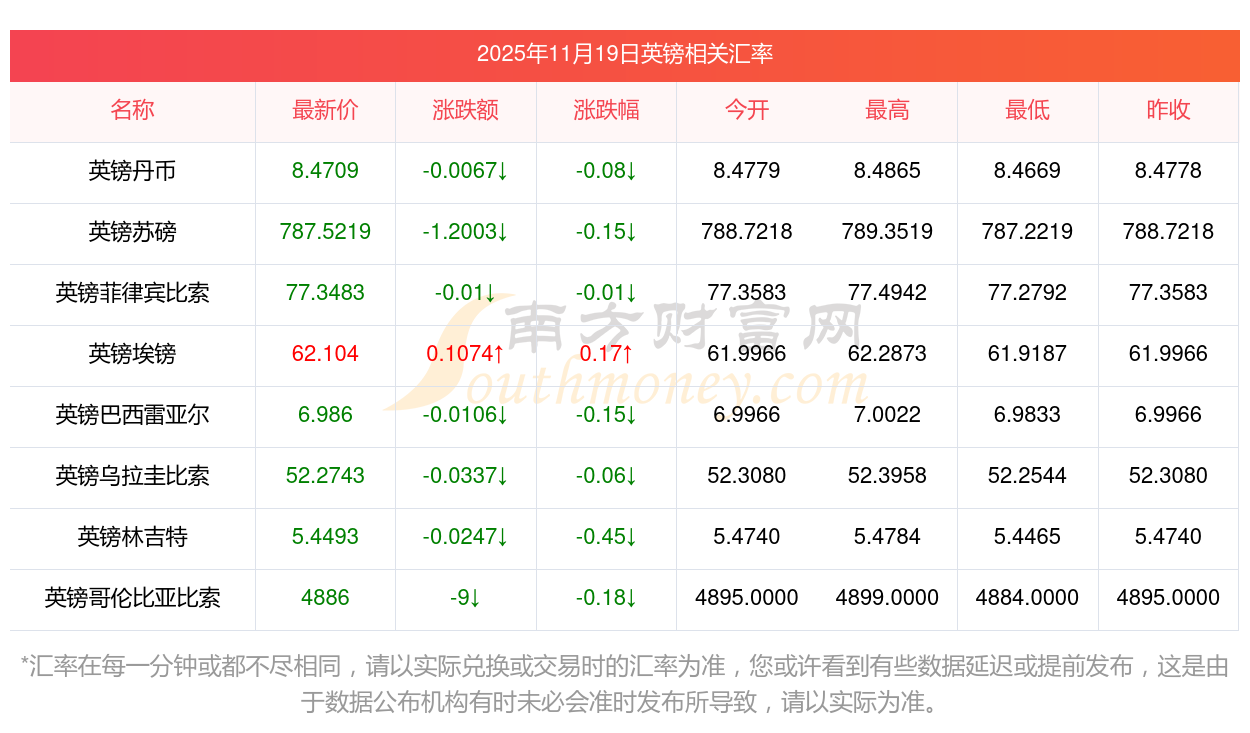 今日英镑对刚果法郎计算汇率查询2025年11月19日