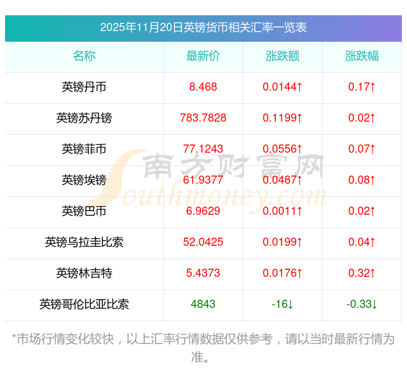 2025年11月20日英镑相关汇率查询