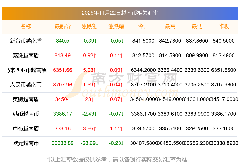 2025年11月22日越南币相关汇率查询