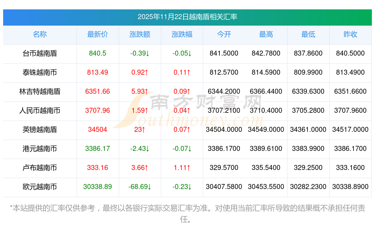 2025年11月22日越南盾相关汇率查询