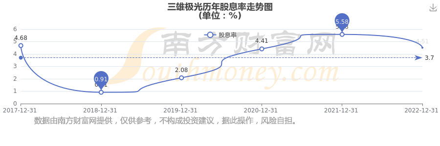 近年三雄极光年度股息率走势如下图: