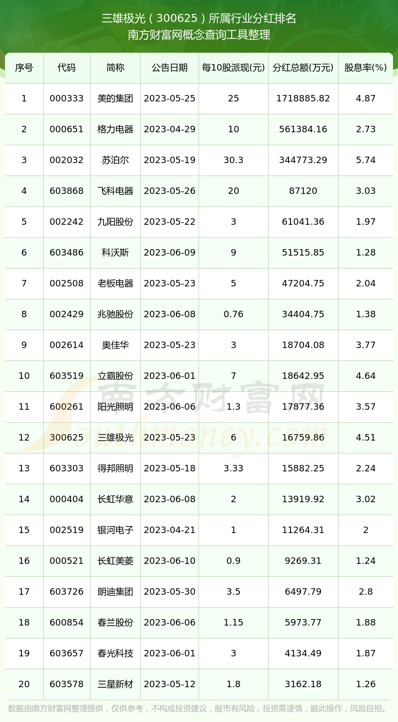 二、三雄极光300625行业分红排名