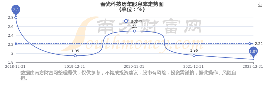 春光科技最新一次公布的分红方案为10派3元。本次权益分派股权登记日为2023年6月6日,除权除息日为2023年6月7日,派息日为2023年6月7日。