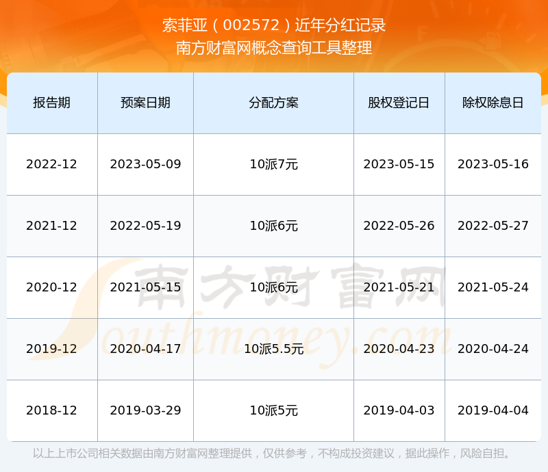 索菲亚最新一次公布的分红方案:10派7元。