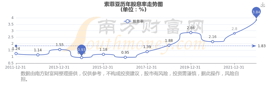 索菲亚历年股息率走势如下图: