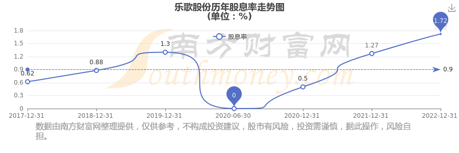 近年乐歌股份年度股息率走势如下图: