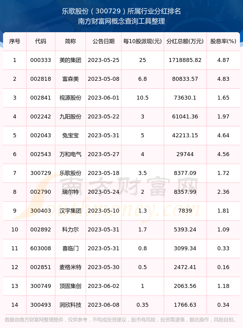 二、乐歌股份300729行业分红排名