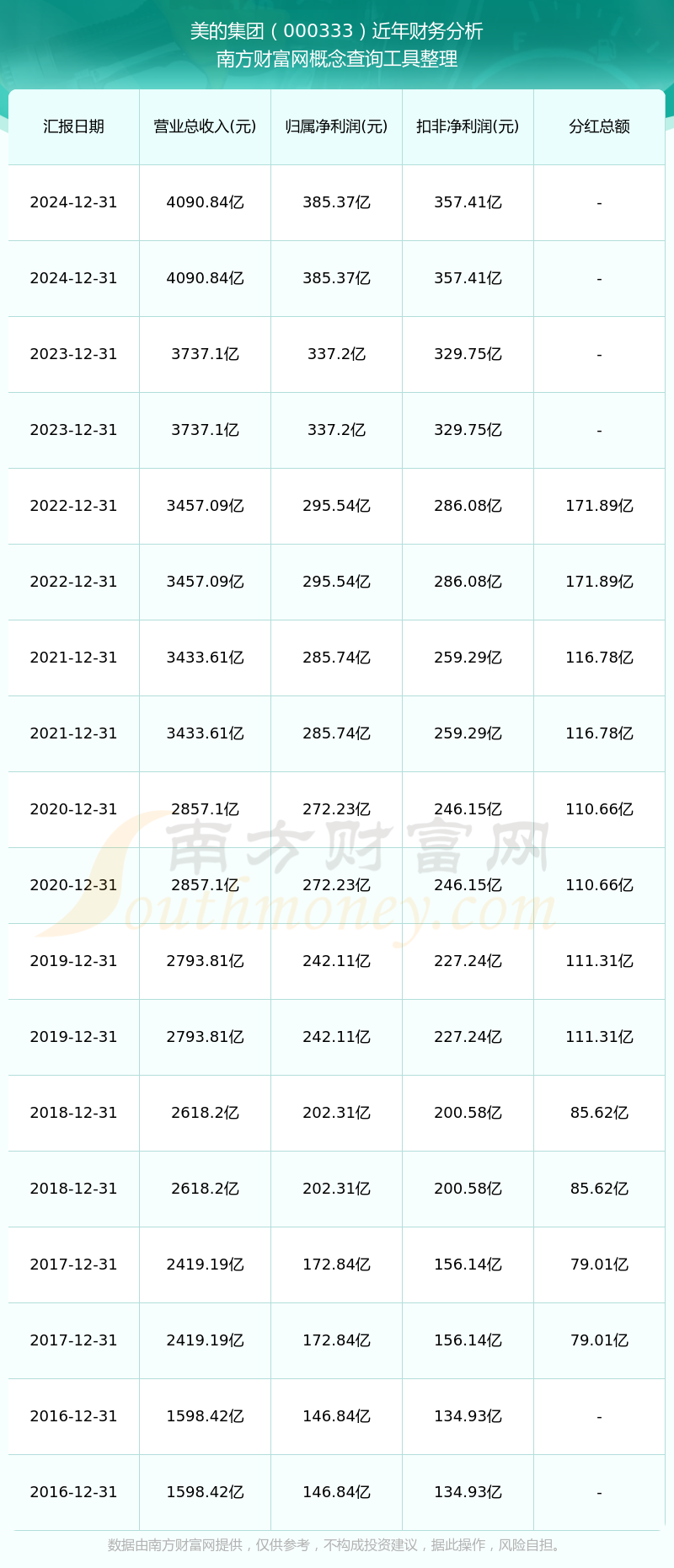 美的集团公司2024年实现营收4090.84亿元,净利润385.37亿元,毛利率26.42%。