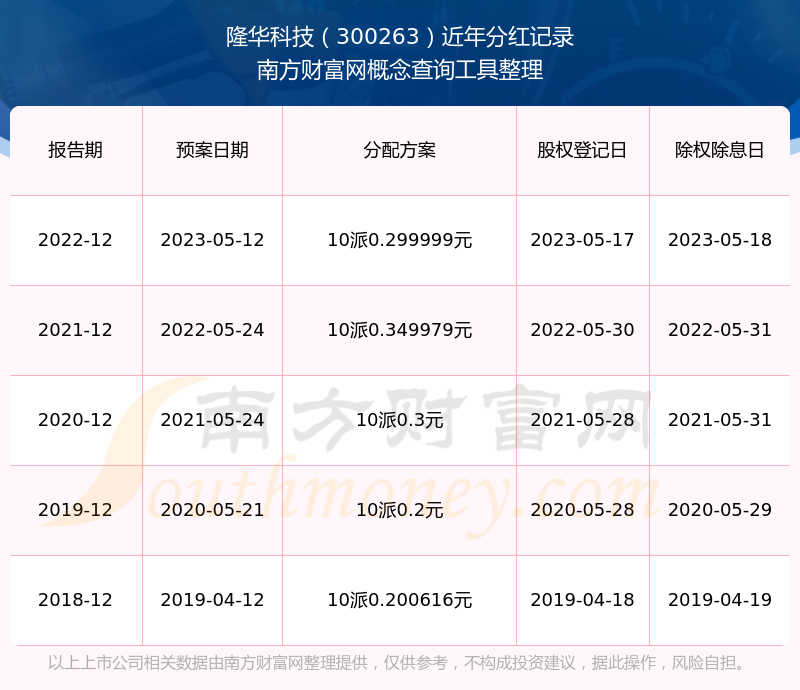 隆华科技最新一次公布的分红方案:10派0.299999元。