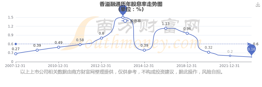 近年香溢融通年度股息率走势如下图: