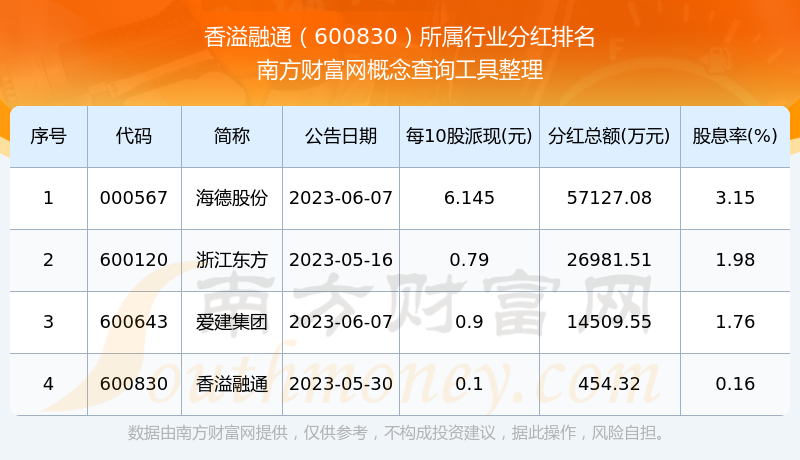 二、香溢融通600830行业分红排名