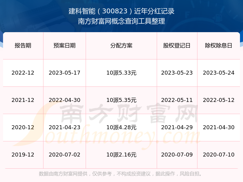 建科智能最新一次公布的分红方案为10派5.33元。本次权益分派股权登记日为2023年5月23日,除权除息日为2023年5月24日,派息日为2023年5月24日。