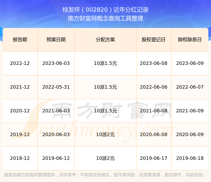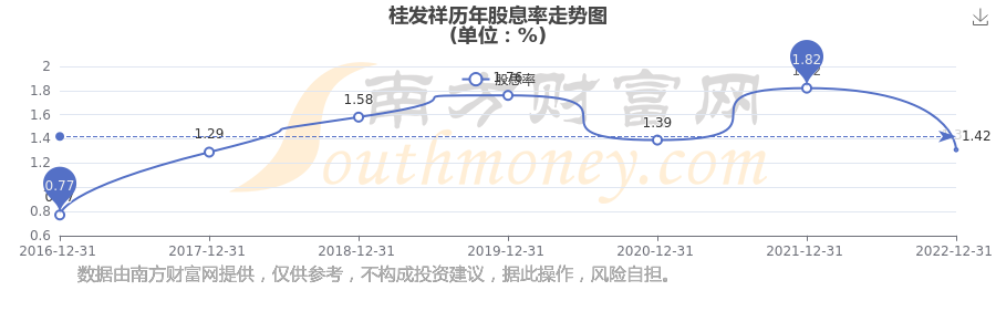 桂发祥最新一次公布的分红方案:10派1.5元。