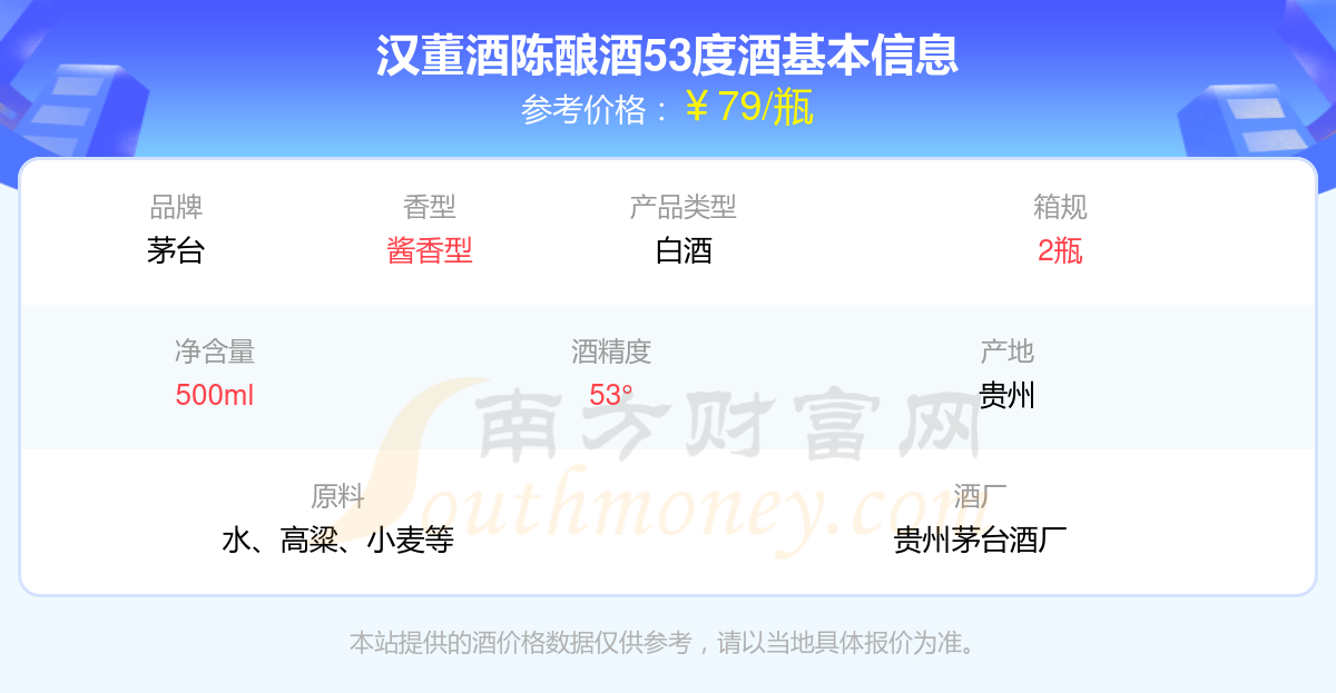 汉董酒陈酿酒53度基本信息