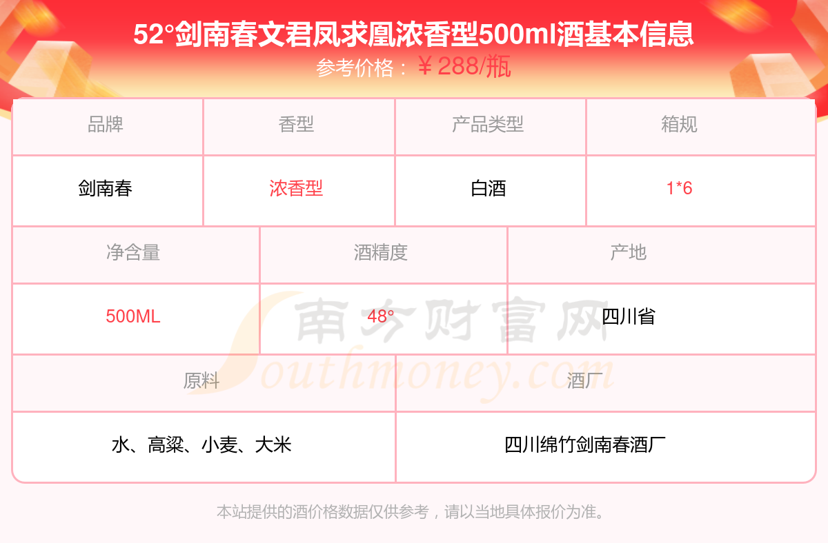 52°剑南春文君凤求凰浓香型500ml基本信息