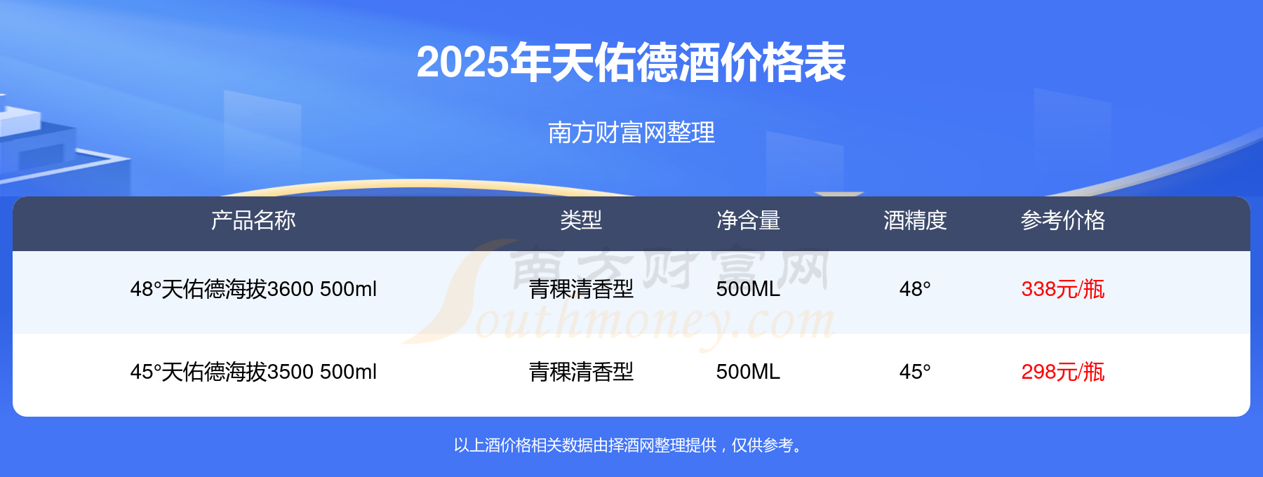 2025天佑德酒最新价格:48°天佑德海拔3600 500ml参考价338元/瓶、45°天佑德海拔3500 500ml参考价298元/瓶。