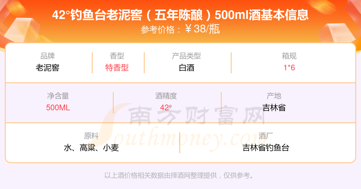 42°钓鱼台老泥窖(五年陈酿)500ml基本信息