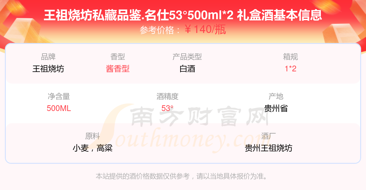 王祖烧坊私藏品鉴.名仕53°500ml*2 礼盒基本信息