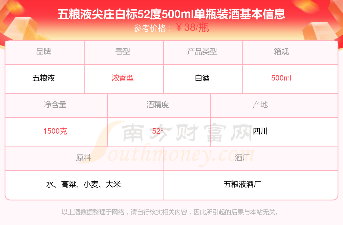 五粮液尖庄白标52度500ml单瓶装基本信息
