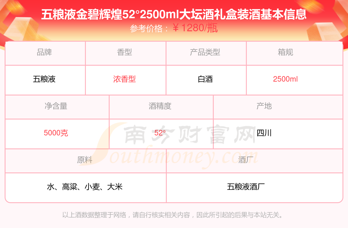 五粮液金碧辉煌52°2500ml大坛酒礼盒装基本信息