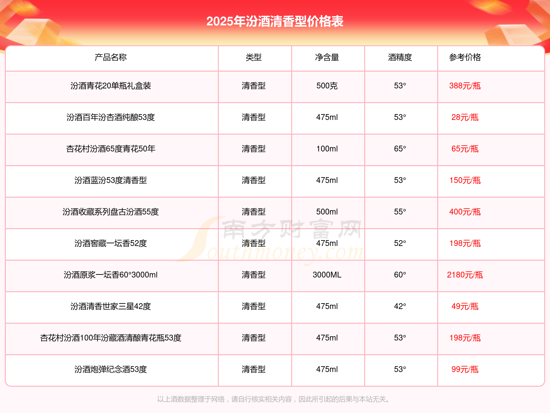 2025汾酒清香型酒最新价格: