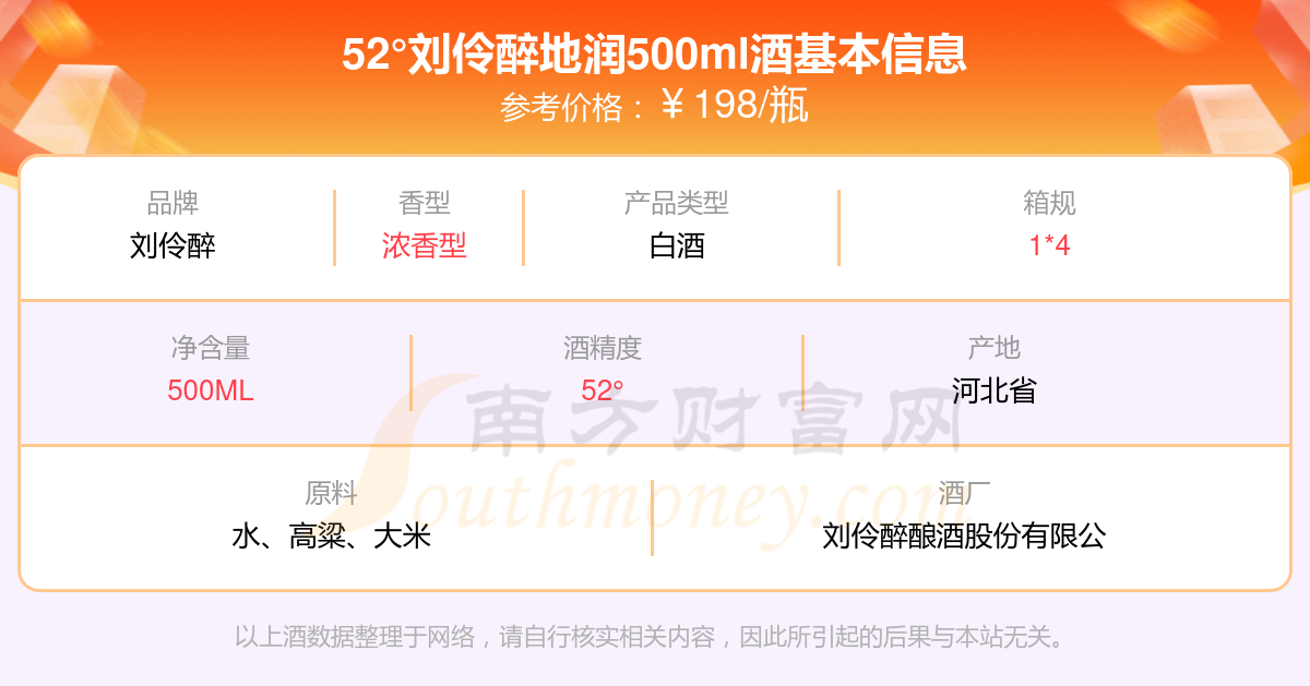 52°刘伶醉地润500ml基本信息