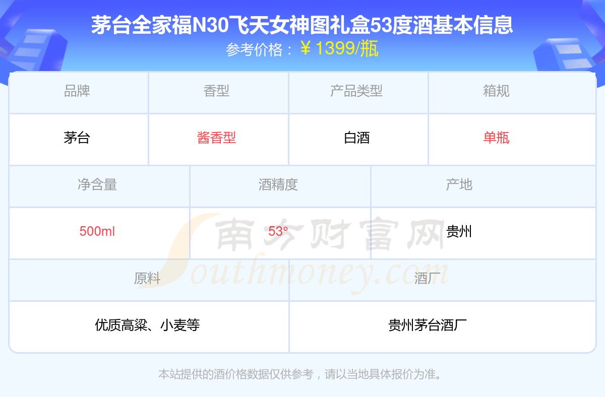 茅台全家福N30飞天女神图礼盒53度基本信息