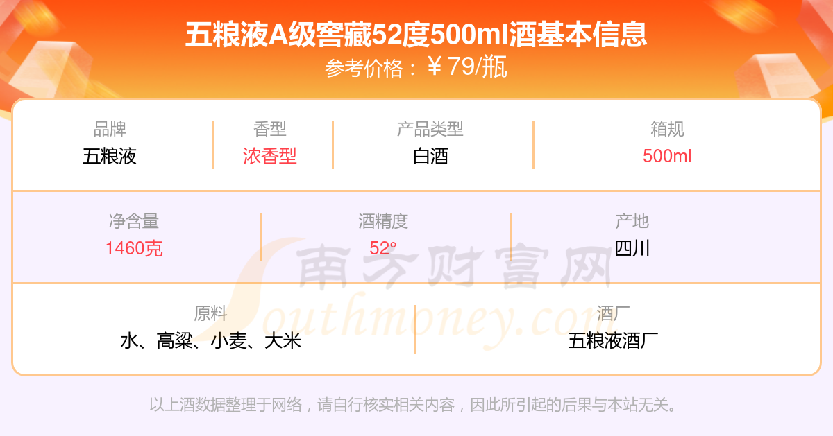 五粮液A级窖藏52度500ml基本信息