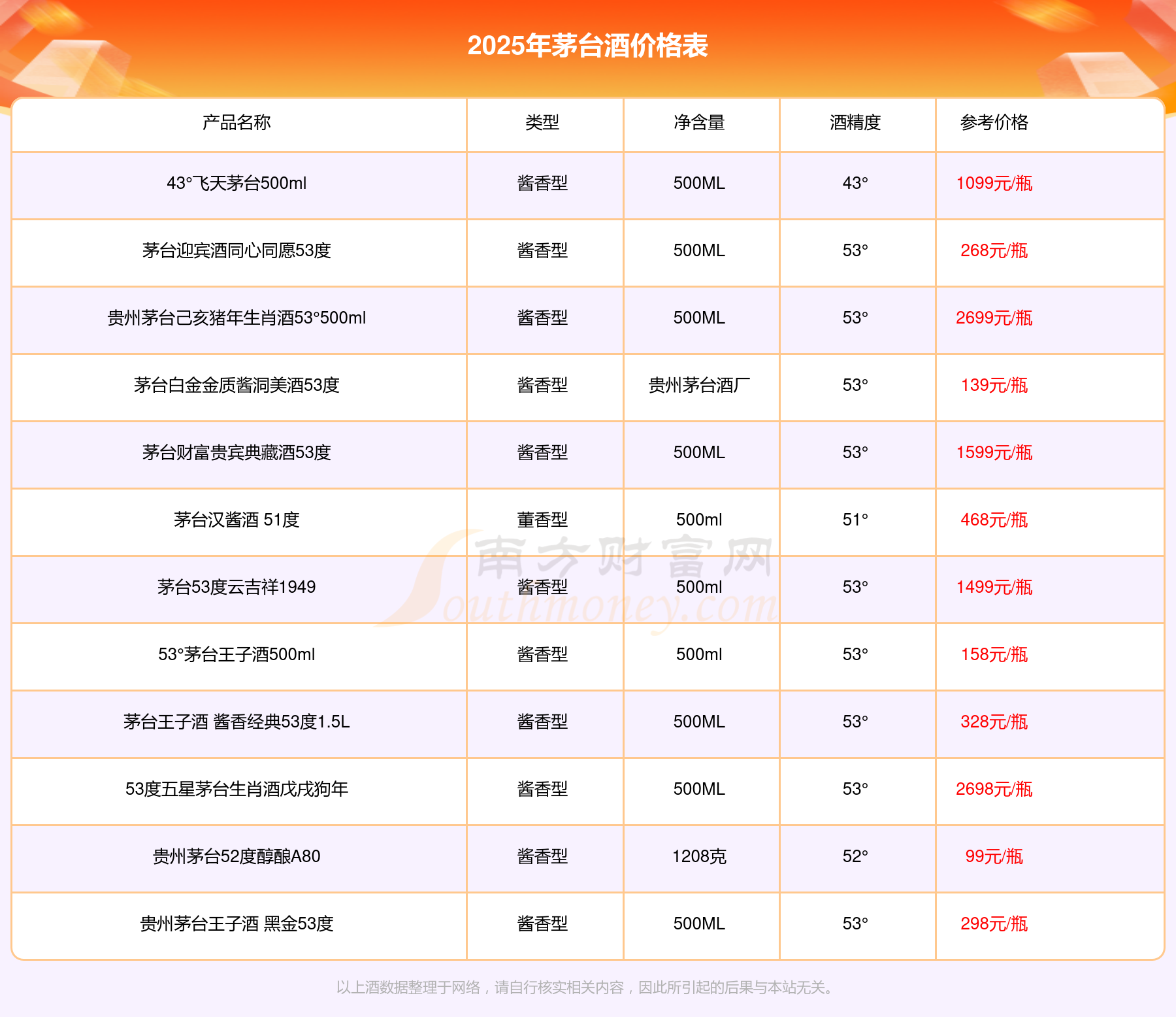 以上酒数据整理于网络,请自行核实相关内容,因此所引起的后果与本站无关。