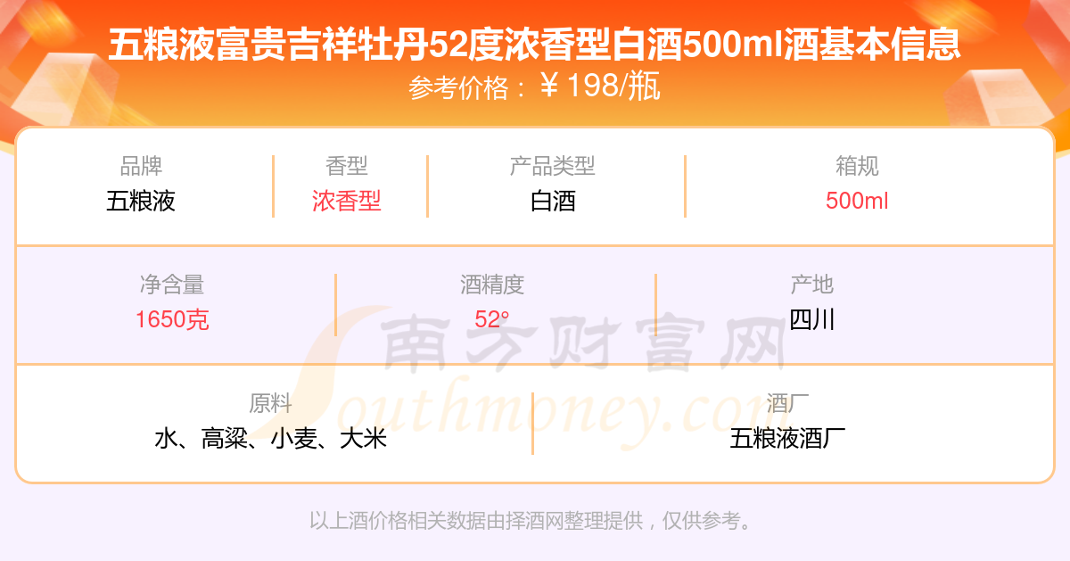 五粮液富贵吉祥牡丹52度浓香型白酒500ml基本信息
