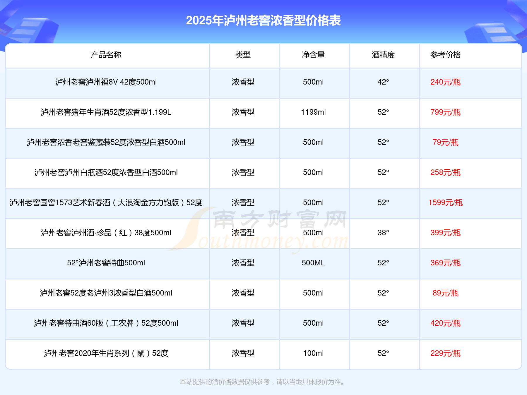 2025年泸州老窖浓香型酒泸州老窖国窖1573春酿鼠兆丰年E 55度、泸州老窖国窖1573生命中的那坛酒55度014、泸州老窖国窖1573春酿鼠兆丰年A 55度、泸州老窖国窖1573生命中的那坛酒55度013浓香型白酒1000ml、泸州老窖国窖1573生命中的那坛酒55度009 1000ml、泸州老窖国窖1573中国品味52度浓香型白酒500ml等最新价格如下: