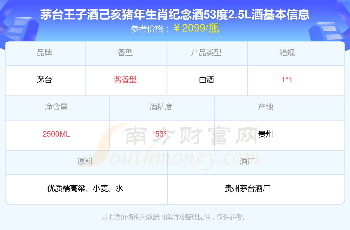 茅台王子酒己亥猪年生肖纪念酒53度2.5L基本信息
