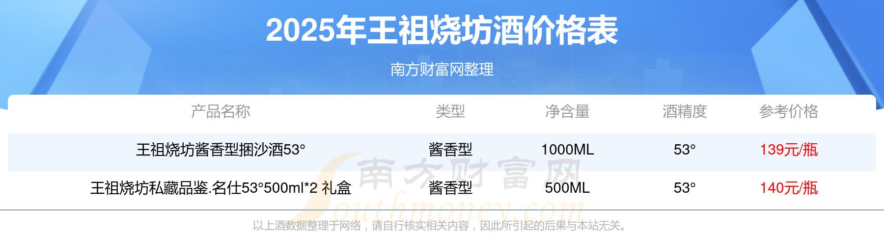 王祖烧坊私藏品鉴.名仕53°500ml*2 礼盒参考价140元/瓶、王祖烧坊酱香型捆沙酒53°参考价139元/瓶。